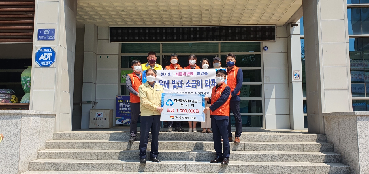 | 김천중앙새마을금고(이사장 엄태영)는 6월 9일 대신동을 찾아 대신동지역사회보장협의체에 100만원의 후원금을 전달했다.