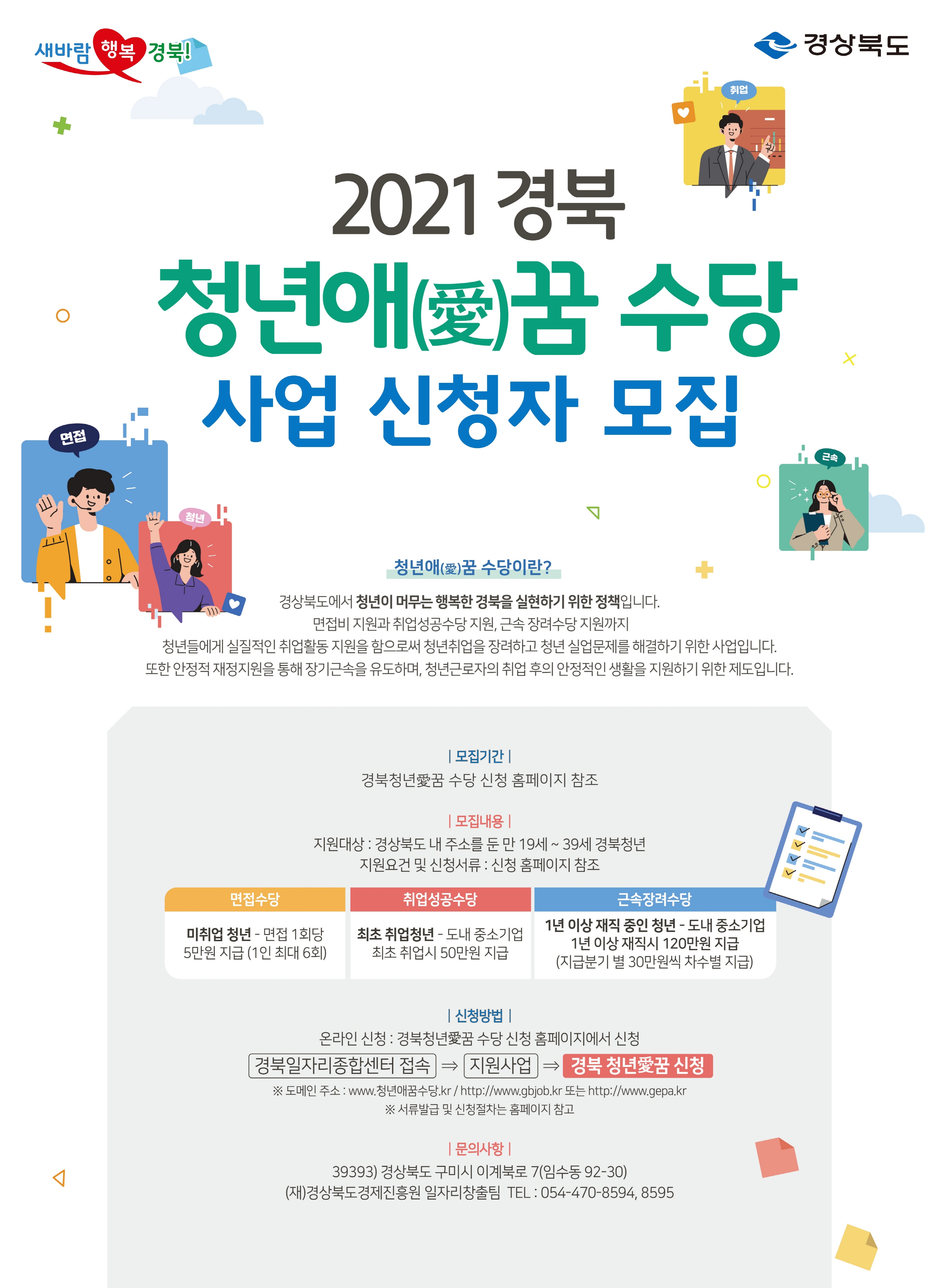 - 청년 2,500명에게 면접수당, 취업성공수당, 근속장려수당 지원 - - 6월 11일부터 경북일자리종합센터에서 인터넷 접수 시작 -