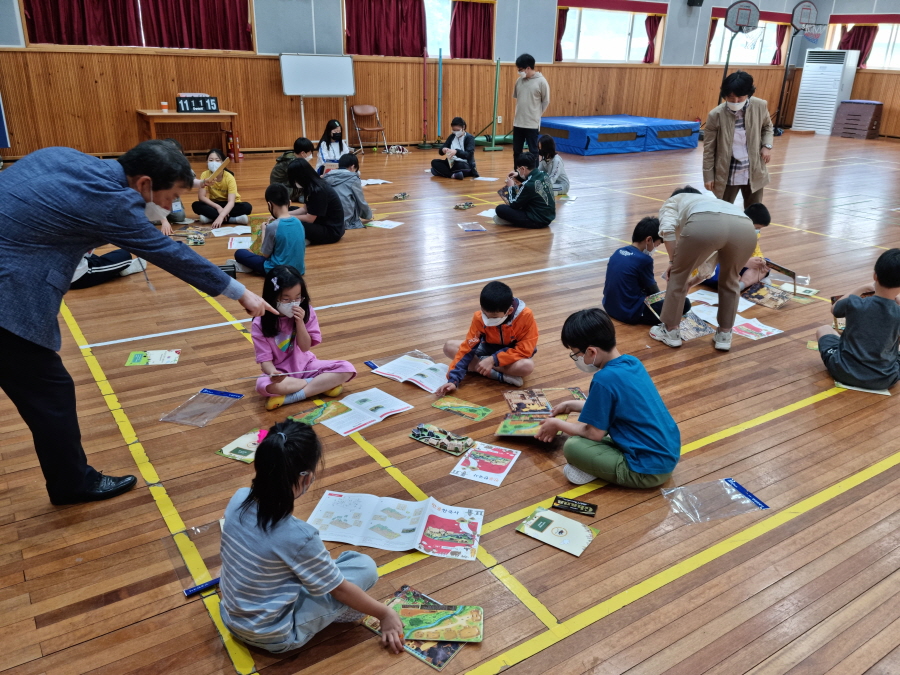 먼저 첫 번째 시간에는 김천의 뿌리인 역사를 담은 감문국 금효왕릉 이야기를 중심으로 다양한 퀴즈와 함께 재미있는 이론 교육을 실시하였다. 수업 시간에는 쉽게 들을 수 없는 우리 지역에 있었던 나라에 대한 흥미로운 이야기에 학생들의 눈빛이 빛나고 수업이 끝난 뒤 실시했던 퀴즈 대결에서는 서로 퀴즈를 맞추기 위해 손을 들며 참여하는 모습이 인상적이었다.