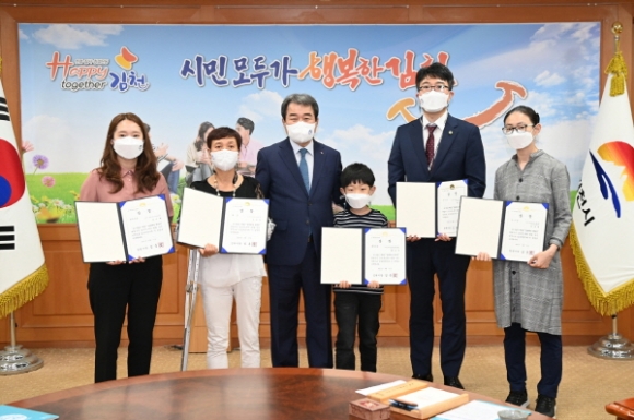|  | | | ⓒ 김천내일신문 | | 김천시는 지난 6월 11일 시청 접견실에서 제1회「“함께해서, 행복한”체험수기 공모전」수상자를 시상했다.
