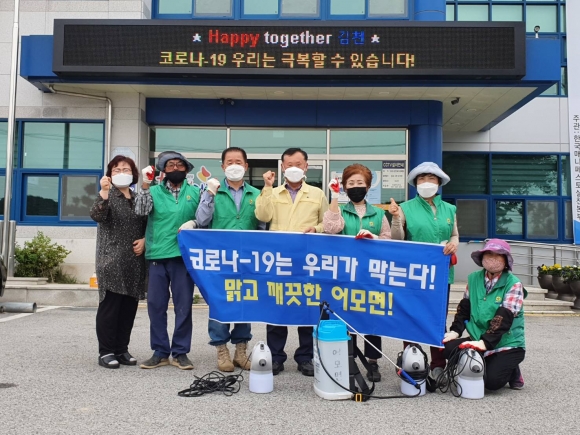 | 지난 11일(금) 14시 어모면 새마을협의회(회장 박천길, 김윤기)는 김천시 ‘일제 방역의 날’에 동참하여 코로나19 확산 방지를 위해 관내 다중이용시설과 버스승강장을 중심으로 방역을 실시하였다.