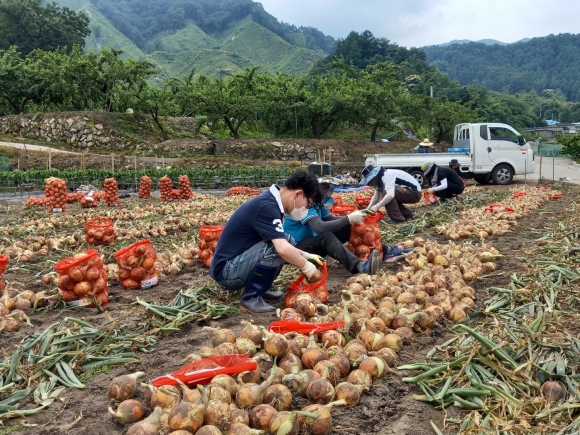 14일 축산과(과장 이상명) 직원 8명은 지례면 관덕리 소재 양파농가 수확작업에 부족한 일손을 보탰다. 특히 올해는 코로나19 장기화로 인한 극심한 인력난과 인건비 상승, 양파산지가격 하락으로 그 어느 때보다 힘든 실정으로 양파 수확농가를 돕고자 추진하게 되었다고 전했다.