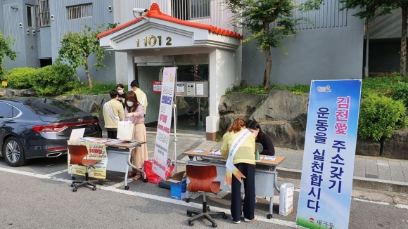| 대곡동행정복지센터(동장 임동환)는『김천愛 주소갖기 운동』의 일환으로 지난 14일, 김천시 14만 인구 사수를 위해 관외에 주소를 둔 기숙사생들의 김천시 전입을 독려하고자, 김천대학교 부곡우방타운 기숙사에서 인구정책팀과 함께 찾아가는 전입서비스를 제공하였다.