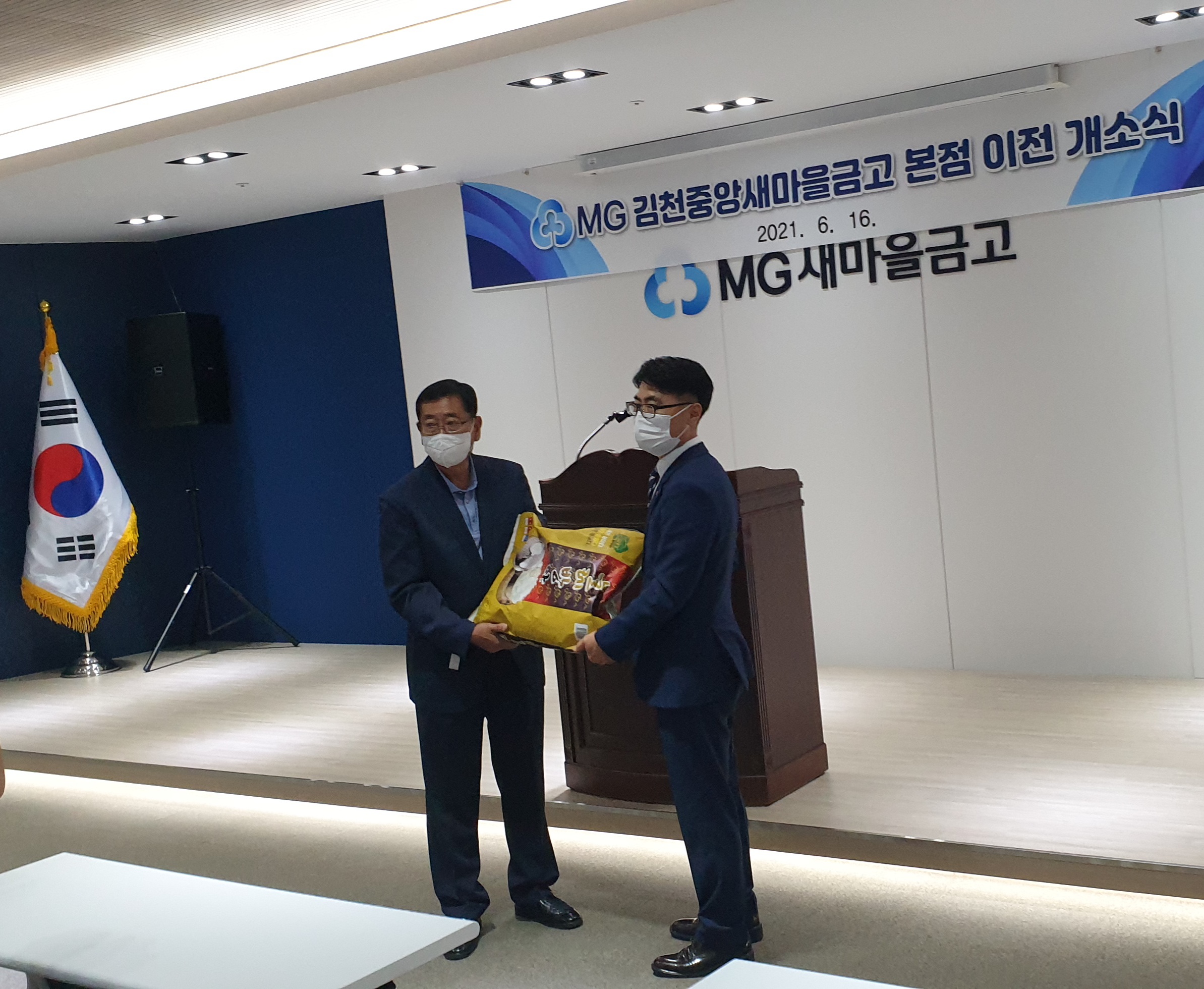 | 김천중앙새마을금고(이사장 엄태영)는 지난 16일, 본점 이전 개소식을 가졌으며 축하 화환을 대신하여 받은 백미 20kg 15포(시가 100만원 상당)를 관내의 독거노인 등의 저소득 가정에 전달해 달라며 자산동행정복지센터로 기탁하였다