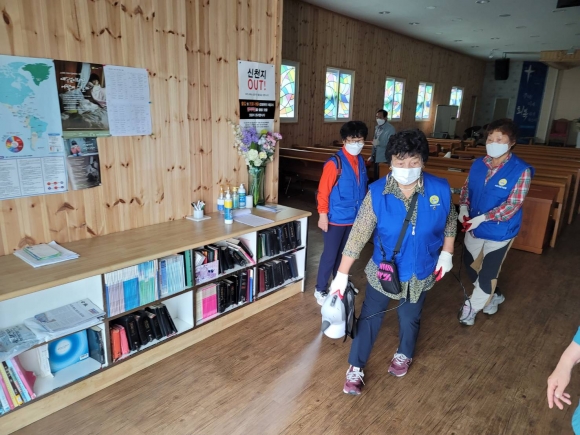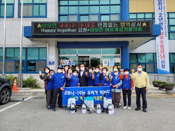 이날 어모면 바르게살기협의회는 코로나 19의 확산을 방지하고자 면행정복지센터 , 농협, 우체국, 치안센터, 종교시설 등 다중이용시설에 대해 방역을 실시하였다.