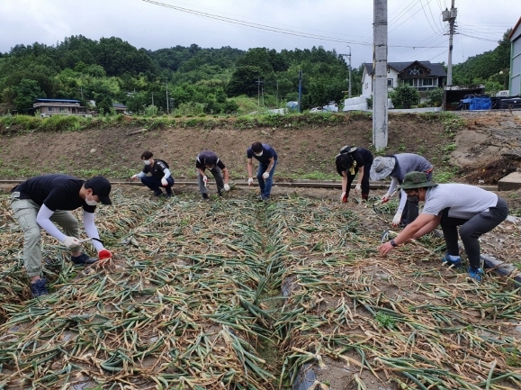 자산동, 양파수확 농가 일손돕기에 구슬땀