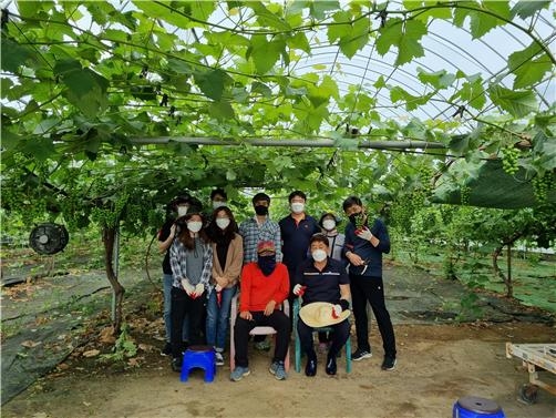| 김천시 대곡동행정복지센터에서는 6월 18일 오전부터 코로나 19로 일손 부족에 시달리는 관내 포동농가에 직원 10여명이 참여하여 포도순 제거작업 등 일손 돕기를 하였다.