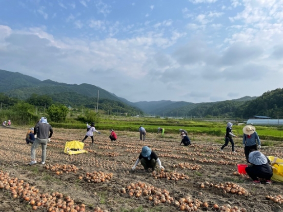 총무새마을과, 양파 농가 찾아 일손 돕기 두 팔 걷어