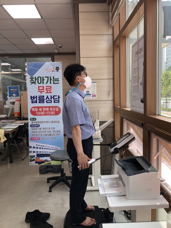 이에 율곡동행정복지센터는 민원인들이 민원 업무를 보면서 건강도 동시에 체크할 수 있도록 혈압계, 인바디(체성분측정기), 대기 의자 등을 설치한 것이다.