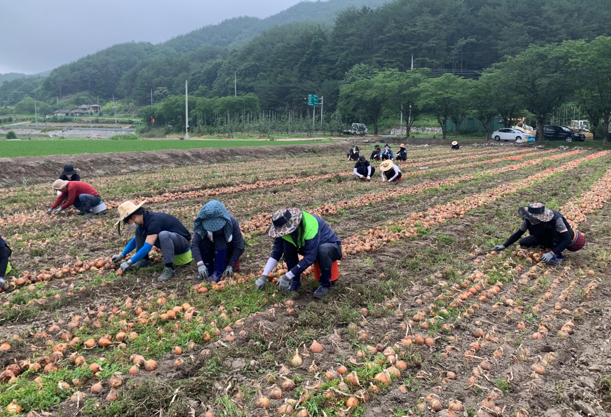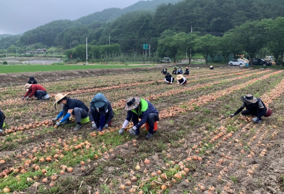 환경위생과 직원 10명은 증산면 평촌리 소재 2,300㎡ 규모의 양파밭을 찾아 양파수확 작업을 실시하여 일손이 부족한 농가에 조금이나마 도움이 되어 다함께 행복한 김천을 만드는데 일조하였으며, 참여자들은 코로나19 안전을 위해 사회적 거리두기 방역수칙을 준수하며 영농작업에 구슬땀을 흘렸다.