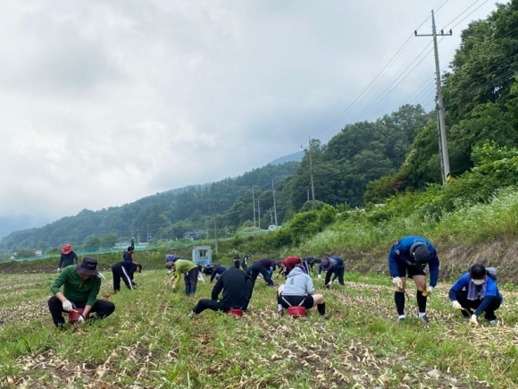 | 김천시 스포츠산업과, 체육회 및 실업농구단 40명은 지난 23일(수) 본격적인 양파수확 시기를 맞아 코로나19로 인해 일손부족으로 어려움을 겪고 있는 증산면 금곡리 소재 양파 농가를 방문하여 농촌 일손 돕기에 나섰다.