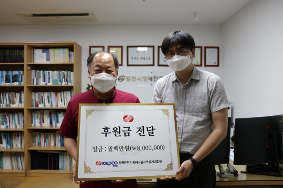 | 한국전력기술(사장 김성암)은 지난 23일 김천시장애인종합복지관(관장 박선하)을 찾아 후원금을 전달했다.