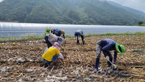 | 김천시 증산면사무소(면장 김명환)는 24일 코로나19 장기화로 일손을 구하지 못해 양파 수확에 어려움을 겪고 있는 증산면 유성리 양파 재배농가를 찾아 농촌 일손돕기를 진행하였다.