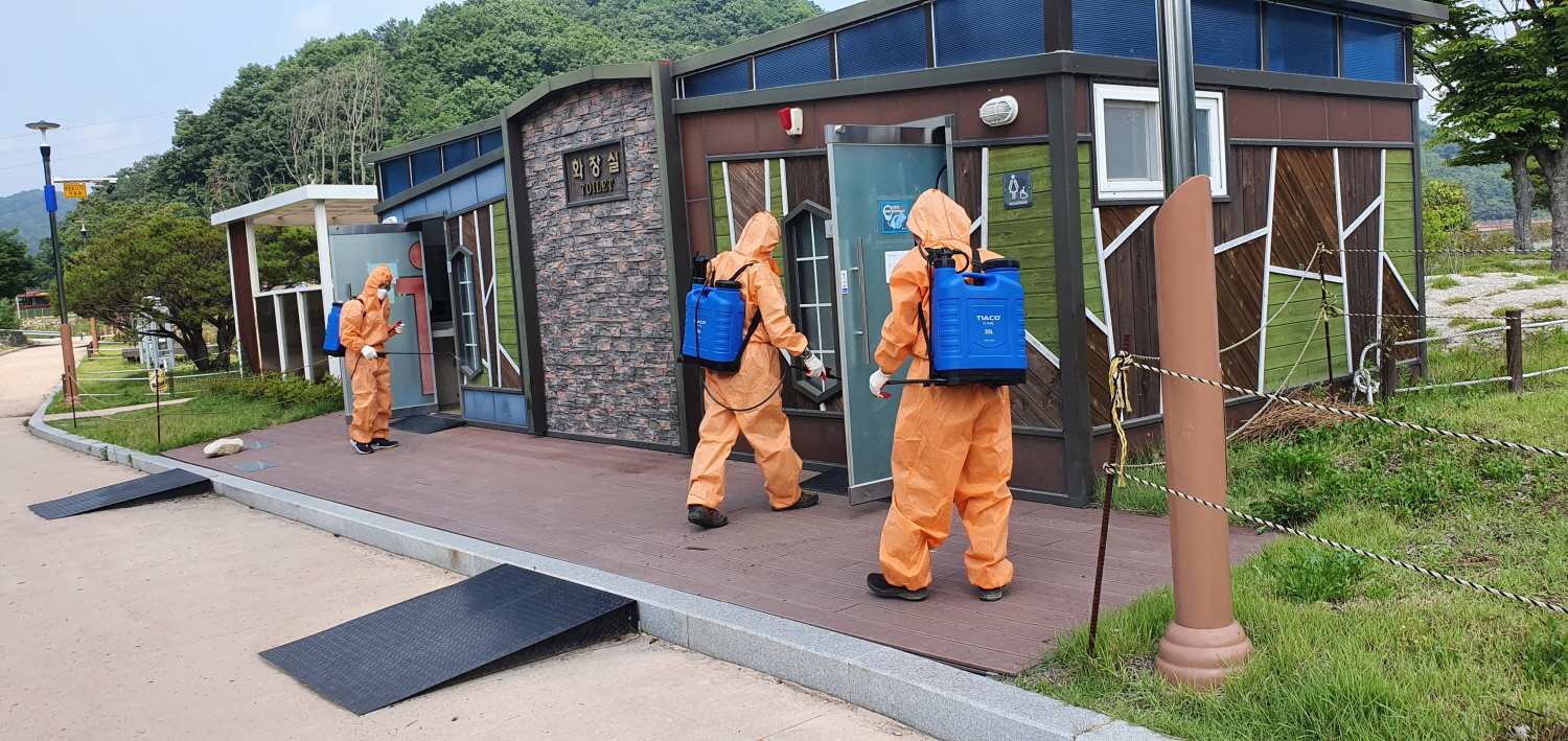 | 남면 이장협의회(회장 임웅기)에서는 6월 25일 코로나19 예방 및 확산 방지를 위해 남면 면민복지회관 및 오봉저수지 화장실 등 방역취약구역을 중심으로 꼼꼼한 방역활동을 실시했다.