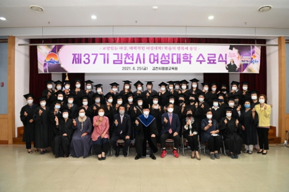 |  | | | ⓒ 김천내일신문 | | 김천시(시장 김충섭)는 지난 6월26일 평생교육원 3층 강당에서 김충섭 김천시장과 송언석 국회의원, 이우청 시의회 의장, 서지선 김천시여성대학총동창회장, 수료생 등 70여 명이 참석한 가운데『제37기 김천시여성대학』수료식을 가졌다.