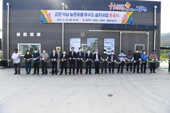 | 김천시가 감문면 일대에 소규모 마을 하수처리시설인 ‘감문 덕남 농어촌마을하수도 설치사업’을 성공적으로 완료하고 25일 준공식을 가졌다고 밝혔다.