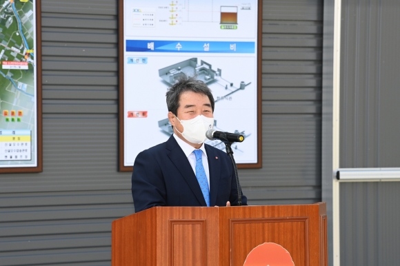 | 김충섭 시장은 축사를 통해 “감문면 일대에 하수처리장의 건립을 축하하고, 상수도와 하수도 시설이 부족한 면지역에 계속적인 시설확충을 통해 <부자농촌>, <살기좋은 농촌마을조성>에 힘쓰겠다.”며 “그 동안 공사로 불편함을 감내해 주신데 고맙다.”고 말했다. 또 코로나로 인한 이중고에도 묵묵히 방역수칙을 준수하며 고통분담을 해 온 시민들에게 감사의 인사를 전했다. |