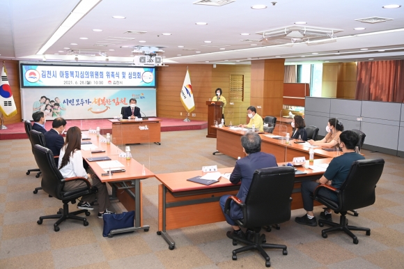 | 김천시는 지난 6월 28일, 김천시청 2층 회의실에서 아동복지 전반에 대한 사항을 심의 ․ 조정하는 「아동복지심의회 위촉식 및 심의회」를 개최하였다.