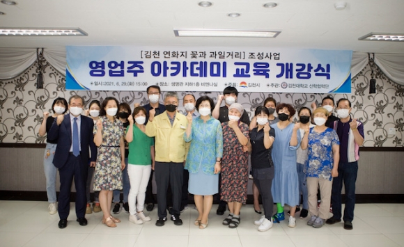 | 김천시(시장 김충섭)는 6월 29일 김천대학교 생명관 지하1층 비엔나실에서 연화지 주변 업소 영업주 20명을 대상으로 연화지 꽃과 과일거리 조성사업 영업주 아카데미 교육 개강식을 개최하였다.