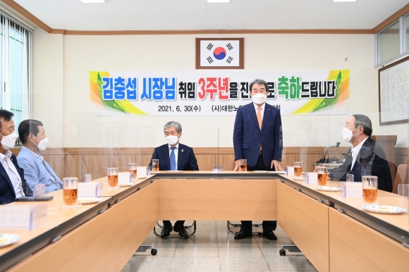 관내에서 어르신들을 대표하는 단체인 (사)대한노인회 김천시지회(지회장 이부화)를 방문하여 앞으로의 시정발전을 위한 지역 어르신들의 다양한 의견을 청취하고, 관내 523개소 경로당이 재개방을 할 수 있도록 작년부터 코로나19 예방에 적극 협조해주신 지역 어르신들께 감사한 마음을 전했다.