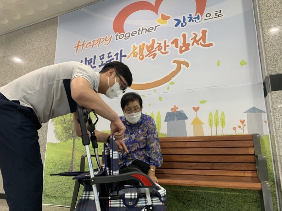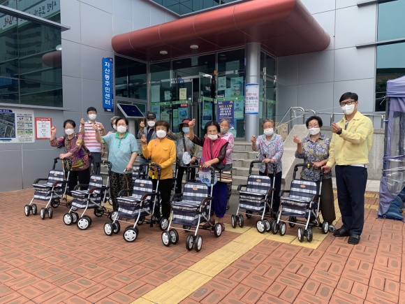 | 김천시 자산동(동장 장한섭)에서는 30일 거동이 불편한 어르신 14분에게 노인활동보조기를 지급했다고 밝혔다. 노인활동보조기란 노인성질환 등으로 보행에 어려움을 겪고 있는 어르신들에 노인활동보조를 위해 유모차 형태의 개인용품 수납 및 의자로 사용할 수 있는 의료기기다.