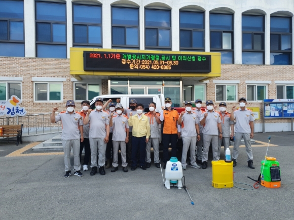 이날 방역은 바쁜 농번기임에도 불구하고 의용소방대원 10여명이 참석한 가운데 관내 마을회관 및 경로당을 중심으로 이루어졌으며, 강종서 율곡119안전센터 소장이 함께 참여하여 의용소방대 대원들과 함께 뜨거운 폭염 속에서도 코로나 확산방지를 위해 구슬땀을 흘렸다.
