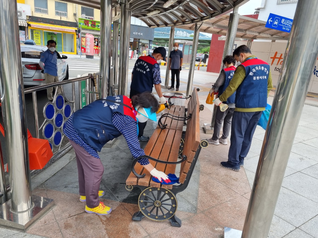 | 평화남산동 한국자유총연맹(회장 문국자)은 지난 2일 코로나19 예방 방역활동을 실시했다. 이번 방역활동에는 한국자유총연맹 평화남산동분회 회원 15명이 참여했으며 김천역 주변과 버스정거장 등 많은 시민들이 이용하는 다중이용시설을 중심으로 실시되었다. 잡초를 뽑고 길거리에 방치된 쓰레기를 줍는 등 환경정화활동도 함께 이루어졌다.