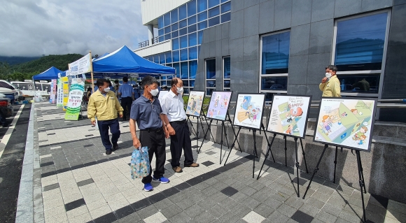 | 연기되었던 “김천시 찾아가는 현장민원실”이 재개되어 이와 연계하여 장애인 이동 상담 및 카툰전시회를 실시하였다.