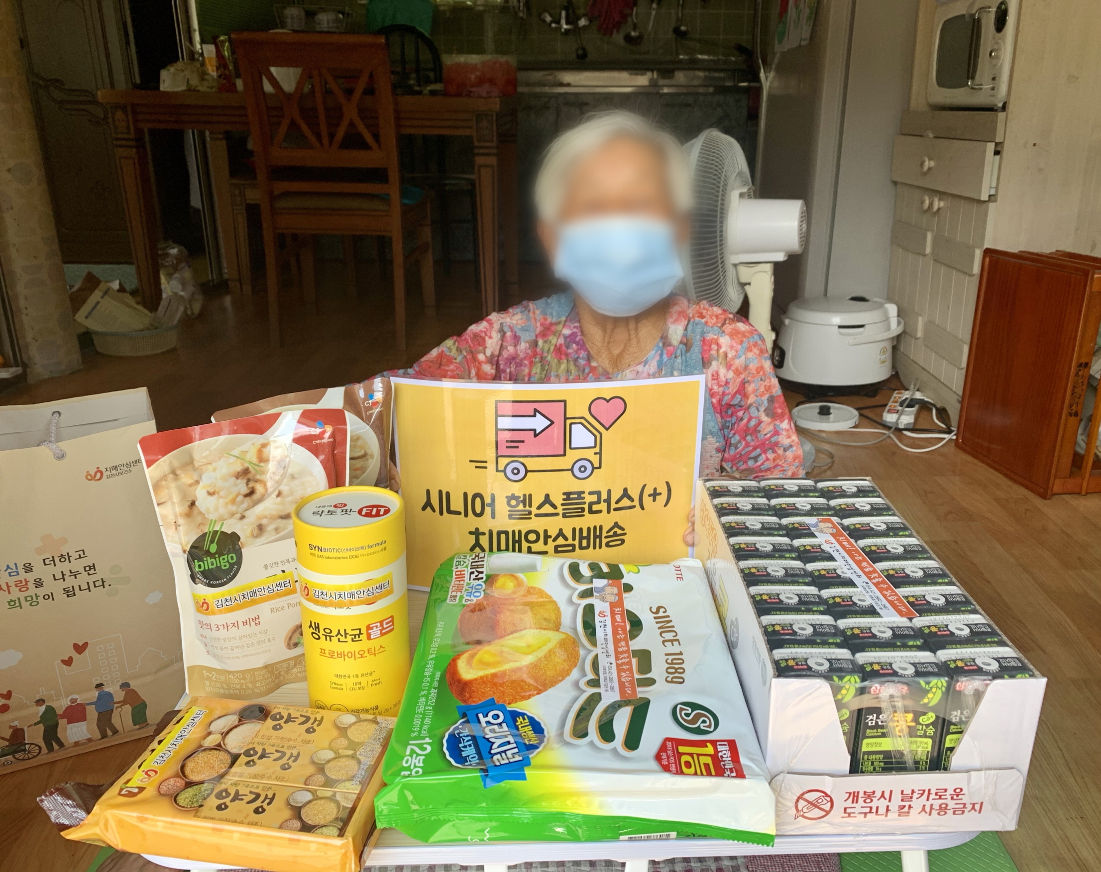 시니어 헬스플러스 사업은 코로나19로 인해 돌봄이 어려운 치매어르신들에게 두유, 유산균, 반조리식품, 간식류 등으로 구성하여 식품꾸러미를 월 1회 총 4회 배부한다.