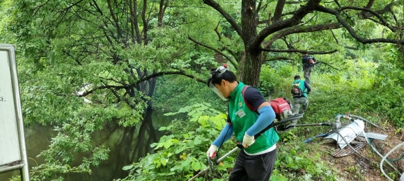 토요일 새벽 새마을협의회원 40명은 면사무소에 모여 안전작업을 결의하고 개인별 안전장구와 예초기를 준비하여 2개조로 조를 편성한 후 인의리 직동지 외 14개소를 깨끗하게 정비하여 저수지 이용객 및 인근 주민들에게 청결한 환경을 제공하게 됐다.
