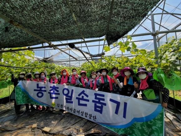 | 김천시새마을여성합창단(단장 김선혜)은 7월 14일 대항면 향천리 포도농가를 찾아 농촌일손돕기에 나섰다.