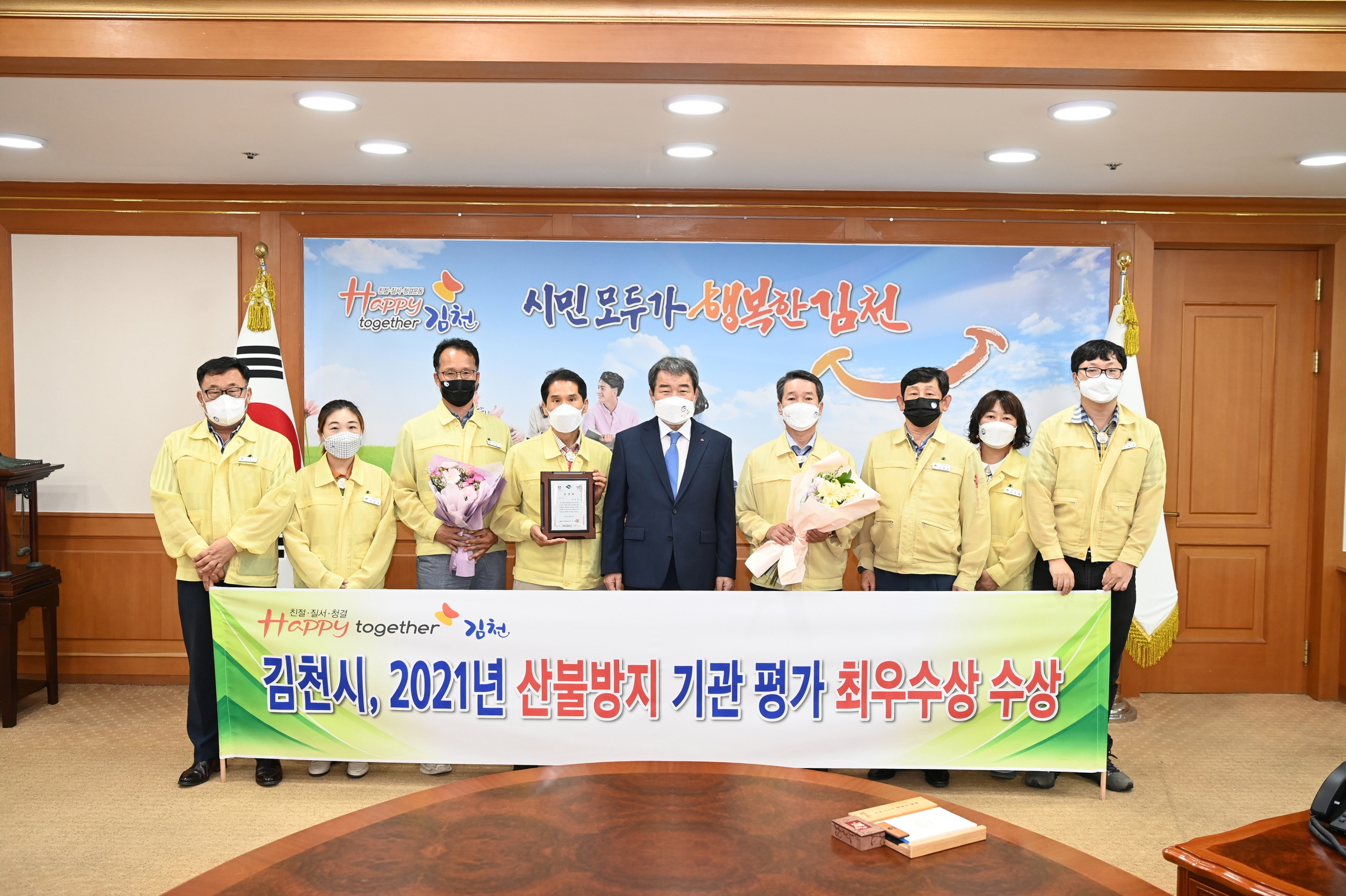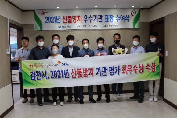 | 김천시가 2021년 산불방지 우수기관 평가에서 “최우수상”을 수상하였다.