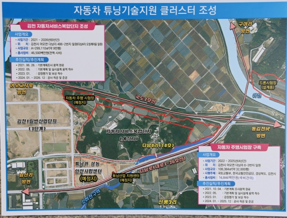 튜닝카 성능·안전 시험센터 사업은 2023년까지 총사업비 405억을 투입하여 김천1일반산업단지 3단계 내에 53,000㎡ 규모로 튜닝카 성능·안전 시험센터, 튜닝 컨설팅·교육 센터 구축하는 사업이다. 이미 금년 초에 행정안전부의 중앙투자심사를 통과하여 사업의 타당성을 확인받았다. 해당 센터는 증가하는 캠핑카 등 튜닝 자동차의 성능 및 안전성을 점검하고 관련 종사자 교육을 도맡게 될 예정이다.