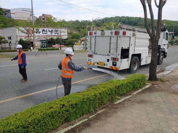 산림녹지과에서는 살수차 5대를 운영하고 인력15명을 투입하여 가로수, 분리대 등 녹지대에 관수를 실시하고, 기설치된 관수시설(스프링클러, 점적관수)을 가동하고 있으며 가뭄 단계에 따라 관수 차량 추가 운영 등 수목 피해에 총력 대응할 방침이다.
