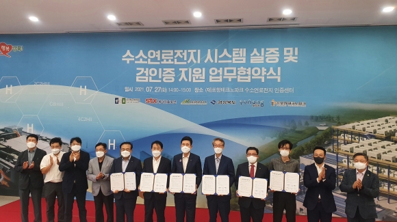 | 경상북도는 27일 포항테크노파크 ‘수소연료전지 인증센터’에서 수소연료전지 인증센터의 국제공인시험기관 지정 현판식 및 수소연료전지 실증지원을 위한 업무협약 체결*했다. * 경상북도, 포항시, 에프씨아이, STX에너지솔루션, 케이세라셀, 포항테크노파크