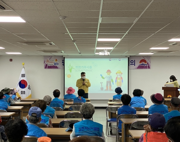 이날 교육은 연일 계속되는 폭염에 어르신들이 안전하게 일자리 참여할 수 있도록 수분섭취와 휴식시간 준수, 폭염대비 행동요령과 쯔쯔가무시 등 병해충 피해예방법, 응급사태 시 비상연락망 체계, 교통안전 등을 안내하였고 코로나 19 재확산에 따른 노인일자리사업 방역 수칙 준수를 당부해 일자리 속 안전의식을 한층 높였다.