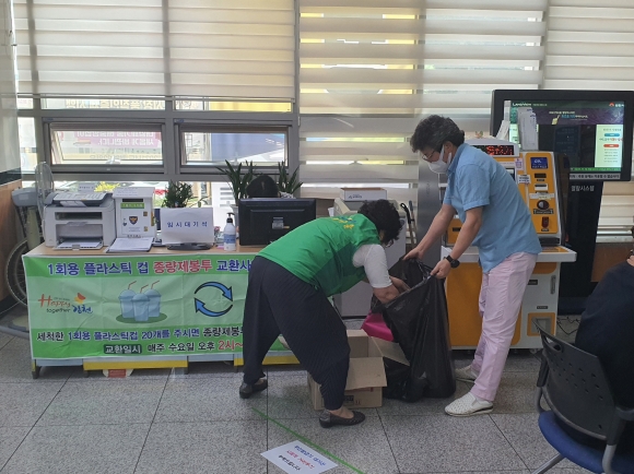 대신동 새마을협의회, 1회용 플라스틱 컵 종량제봉투 교환사업 봉사활동 실시
