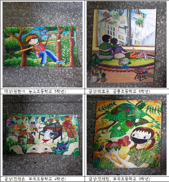 심사결과 그림 부분에서 대상(권현아 농소초 5학년) 금상(박효우 금릉초 6학년, 전채은 부곡초 4학년, 전채린 부곡초 3학년) 은상(이아민 부곡초 3학년외 5명) 동상(박준서 부곡초 2학년외 7명) 장려상(이승연 동신초 1학년외 55명), 글쓰기 부분에서 대상은 없고 장원(이도연 농소초 5학년, 유아영 율곡초 5학년) 차상(김지호 동신초 4학년, 양승현 농소초 3학년) 차하(조찬흥 율곡초 4학년, 채병호 중앙초 4학년) 참방(강지연 모암초 4학년외 4명)등이 각각 입상하였다.