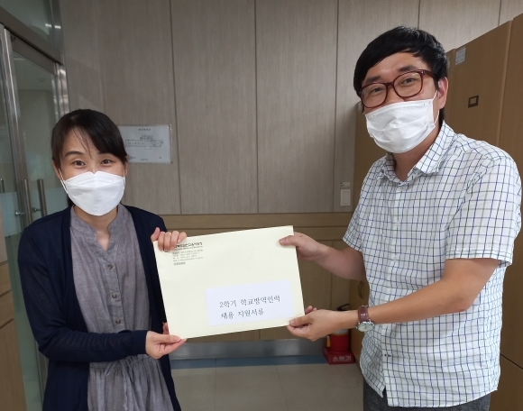 학교방역 인력 지원 사업은 학생의 안전한 교육활동 보장, 학사 운영의 조기 안정화를 위한 것으로, 김천 관내 각급학교에서 요청한 총 42명 필요인력에 대해 일괄 채용대행 후 관련 서류를 해당학교에 직접 인편 전달 완료하여 어려운 코로나 시대에 교원의 업무 경감에 기여하였다.