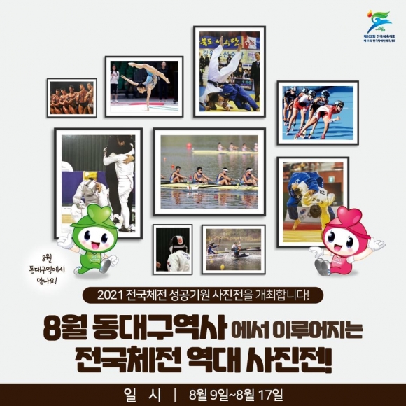 ‘다시 만난 전국체전, 희망의 체전’이라는 주제로 열리는 이번 사진전은 9일부터 KTX동대구역사를 시작으로 김천구미역사(9월 9일 ∼ 16일)와 전국체전 주 개최지인 구미 시민운동장(10월 8일 ~ 25일)에서 개최된다.