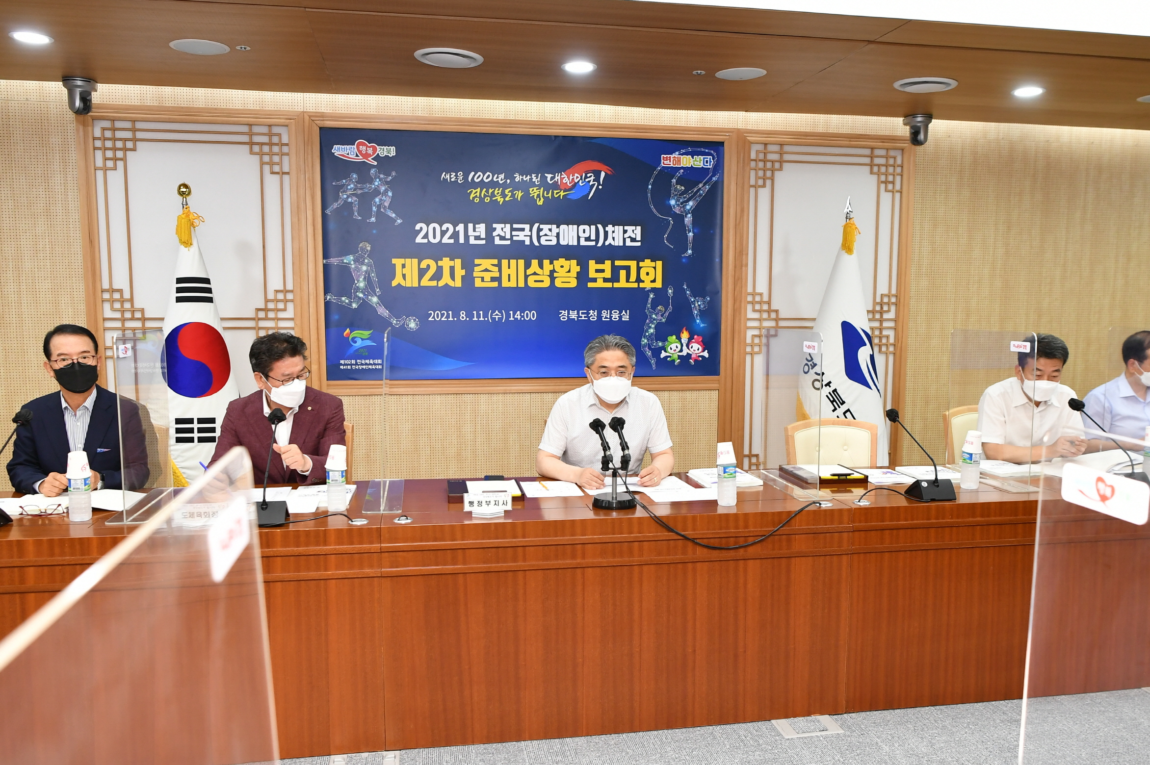 | 경상북도는 11일 강성조 행정부지사 주재로 도청 회의실에서 ‘제102회 전국체육대회 ‧ 제41회 전국장애인체육대회’ 제2차 준비상황보고회를 열고 도교육청, 도경찰청, 도체육회와 함께 체전 추진상황을 점검했다.