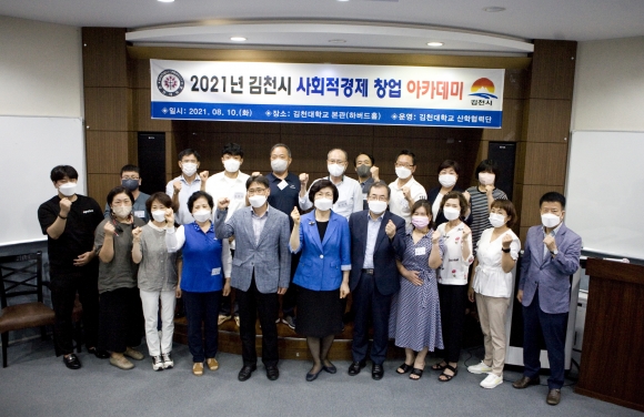 | 김천대학교(윤옥현 총장) 산학협력단(백열선 단장)과 김천시(시장 김충섭)는 사회적경제 기업가를 발굴·육성하기 위해「2021년 김천시 사회적경제 창업 아카데미」를 지난 10일 김천대 본관 하버드홀에서 개최했다.