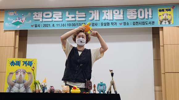 | 김천시(시장 김충섭)는 시립도서관 여름방학 특별 프로그램인 「책으로 노는 게 제일 좋아!」마지막 수업을 유설화 작가를 초청해 지난 8월 11일 운영했다고 밝혔다.