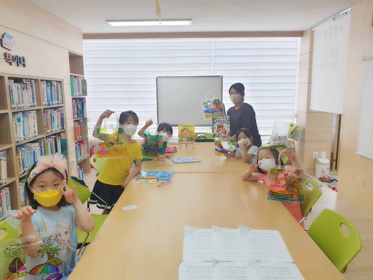 이번 수업은 여름방학을 맞아 유아 및 초등 저학년생을 대상으로 진행하고 있으며, 공모사업을 통해 선정된 순회사서 선생님과 함께 그림책을 읽고 독후활동으로 게임, 역할극 및 다양한 공예품 만들어 보기 등으로 아이들이 생각을 마음껏 펼치며 오감을 자극하는 놀이를 통해, 책에 대한 흥미를 유발할 수 있는 방식으로 진행되고 있다.