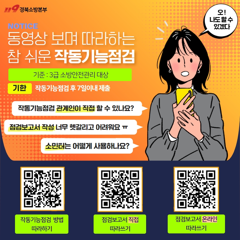 김천소방서, 소방시설 자체점검 매뉴얼 영상, QR코드로 본다