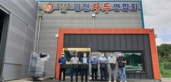 | 김천시 남면에 위치한 ㈜베스트원(대표 김인섭)은 지난 8. 18(수) 영농조합법인 김천자두연합회를 방문하여 자두 수확바구니 2,000개를 기부했다. 이날 자두 수확바구니 기부전달에는 성기원 자두연합회 회장, 김인섭 ㈜베스트원 대표, 김영우 농업정책과장 등 10여명이 참석하였다.