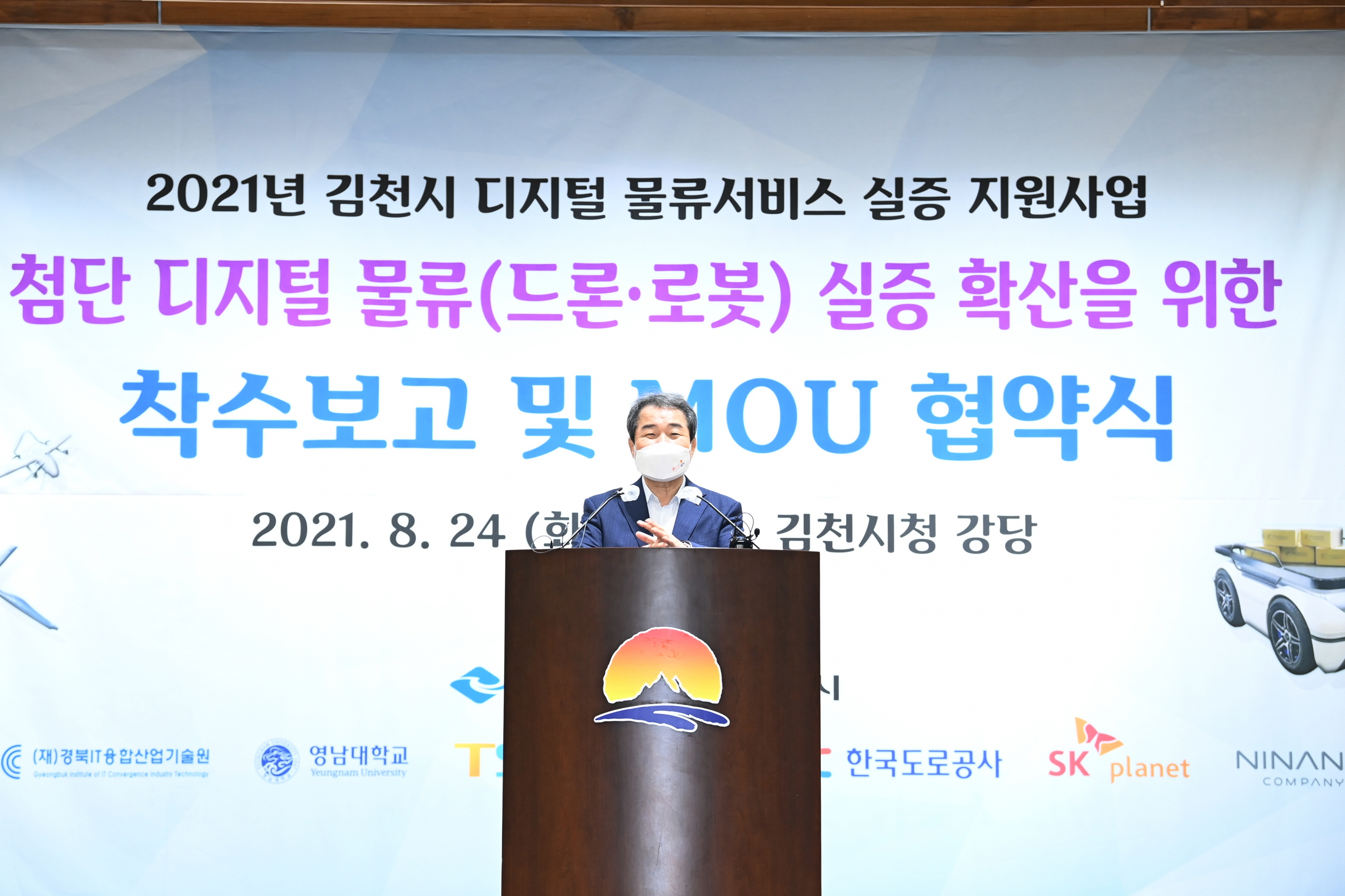 김충섭 시장은 환영사를 통해‘드론, 자율주행 로봇 등을 활용한 첨단 물류 수요가 증가하는 추세에서 본 사업은 김천시가 4차산업 미래 거점도시로 우뚝 설 수 있는 좋은 기회이다. 기존에 추진해온 다양한 미래 산업들과 시너지 효과를 극대화하고 다양한 이해관계자들과 협력하여 김천시를 더 살기 좋은 도시로 만들 것.’이라며 앞으로의 포부를 밝혔다.