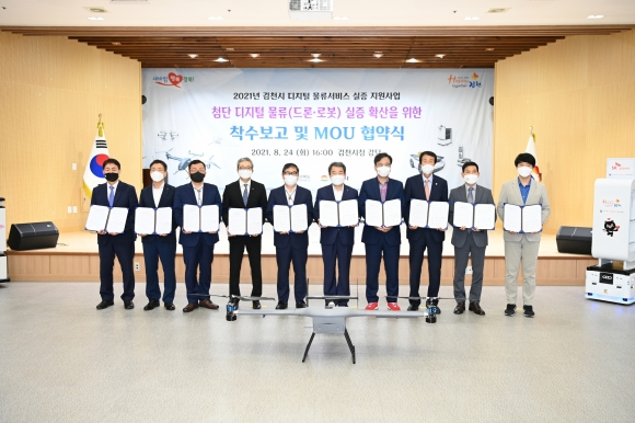 | 김천시(시장 김충섭)는 ‘디지털 물류서비스 실증 지원사업’업무 협약식을 8월 24일 김천시청 3층 강당에서 개최했다고 밝혔다.