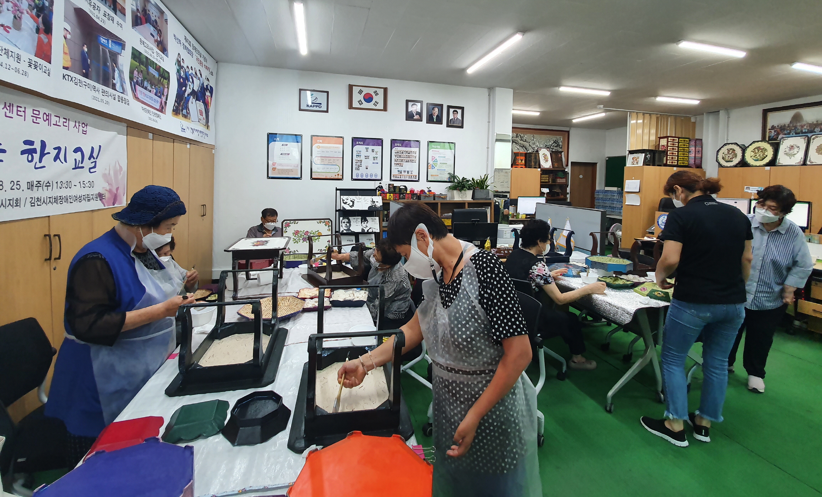 이번 한지교실은 코로나-19 예방을 위해 사무실 방역은 물론 손 소독, 발열 체크, 마스크 착용 등 생활 속 거리두기 지침을 유지해 소규모로 진행됐으며 일상생활에 필요한 다양한 공예작품을 만들어 봄으로써, 자신의 능력개발 및 성취감을 향상시키는 계기가 되었다.