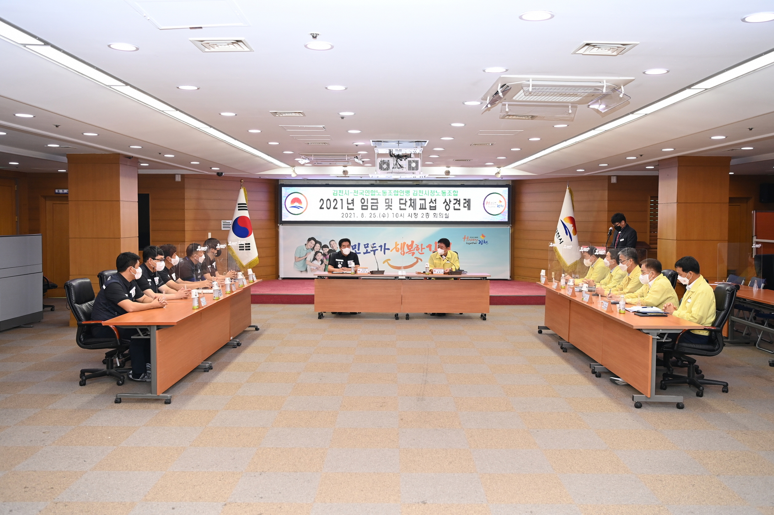 | 김천시(시장 김충섭)는 8월 25일 김천시청에서 전국연합노동조합연맹 김천시청노동조합(위원장 이준식)과 2021년도 임금 및 단체교섭을 위한 상견례를 가졌다.